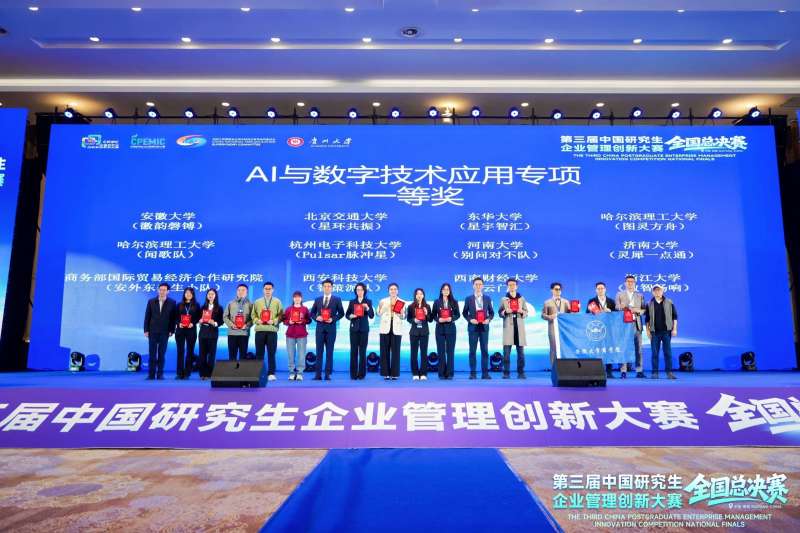 AI与数字技术应用专项聚焦数智时代技术创新,考验团队将AI与数字技术融入管理场景、赋能产业发展的能力,12支队伍获一等奖,35支队伍获二等奖。此外,大赛还设立“未来之星”研学奖,12支队伍获此殊荣。