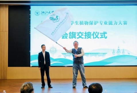在大赛闭幕式上,植物保护专业教学创新联盟副理事长李虎宣布第六届全国大学生植物保护技能大赛将由我校农学院和绿色农药全国重点实验室联合承办,农学院植保系主任王勇作为第六届全国大学生植物保护专业能力大赛承办单位的代表从大赛组委会手中接过会旗并作表态发言,向全国植保学子发出热情邀约,期待明年在活力四射的贵阳与各方英才齐聚,共同续写全国植保技能大赛的新篇章。