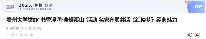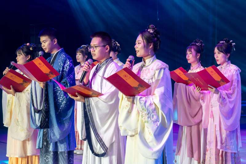 贵州大学文学院学生吟诵《红楼梦》经典诗词,音乐学院李亚希表演女子独舞《梦红楼》,通过多元艺术形式彰显吟诵、视听之美。