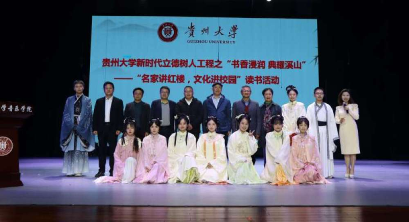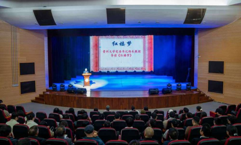 10月27日上午,新时代立德树人工程之“书香浸润·典耀溪山”——“名家讲红楼·文化进校园”读书活动在贵州大学音乐学院实验剧场举行。贵州大学党委书记、贵州省社科联副主席杨未,贵州大学党委常委、副校长陈艳波,中国红楼梦学会会长、中国艺术研究院红楼梦研究所所长孙伟科,贵州省文联原副主席、贵州省红楼梦研究学会名誉会长井绪东,贵州民族大学文学院院长、贵州省高校哲学社会科学学术带头人吴电雷,国家一级演员、贵州大学音乐学院教授张海玲出席活动。