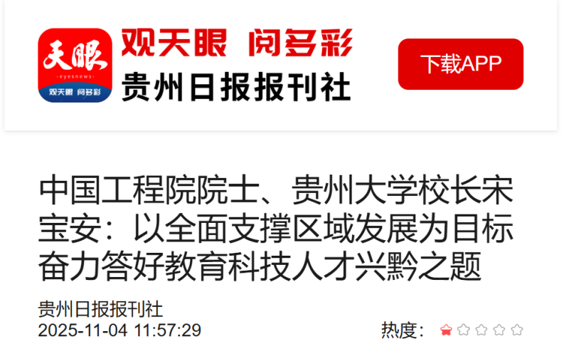 当前,全省正学习贯彻党的二十届四中全会精神,省委、省政府高规格举办全省科学技术奖励大会,持续营造尊重劳动、尊重知识、尊重人才、尊重创造的浓厚氛围,让每一位科技工作者倍感振奋、备受鼓舞。作为全省高等教育的“领头羊”和“排头兵”,贵州大学始终坚守“中国特色、世界水平、贵州需求”的办学定位,在国家级科研平台建设、高层次人才集聚、重大科技成果转化等方面实现历史性突破,为贵州特色教育强省建设和经济社会高质量发展注入了强劲动能、提供了硬核支撑。