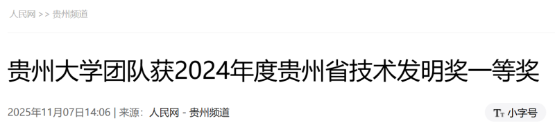 贵州大学周少奇团队获2024年度省技术发明奖一等奖。