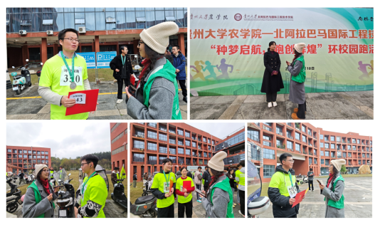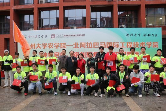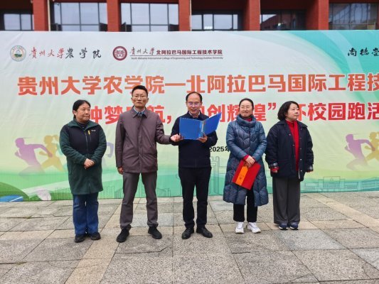 贵大新闻网讯(农学院 供稿)11月18日,贵州大学西校区崇学楼旁彩旗飘扬、人声鼎沸,洋溢着热烈昂扬的氛围。由农学院与北阿拉巴马国际工程技术学院联合主办的“种梦启航,跑创辉煌”环校园跑活动在此拉开帷幕,350名师生以奔跑之名传承长征精神,用脚步丈量青春担当。贵州大学党委常委、党委统战部部长、北阿拉巴马国际工程技术学院院长洪云为活动致辞,农学院党委书记冉龙彪主持活动,北阿拉巴马国际工程技术学院党委书记吴静、农学院副院长乙天慈、党委委员蔡菲出席活动。