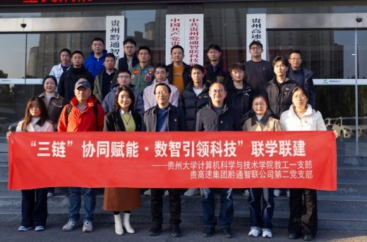 贵大新闻网讯(计算机科学与技术学院 供稿)11月25日下午,一场主题为“‘三链’协同·数智引领科技——共享·共学·共克·共勉”为主题的党建联建联学活动在贵州黔通智联科技股份有限公司举行。活动由贵州高速集团黔通智联公司本部第二党支部联合贵州大学计算机科学与技术学院(贵州保密学院)教工第一党支部共同举办。