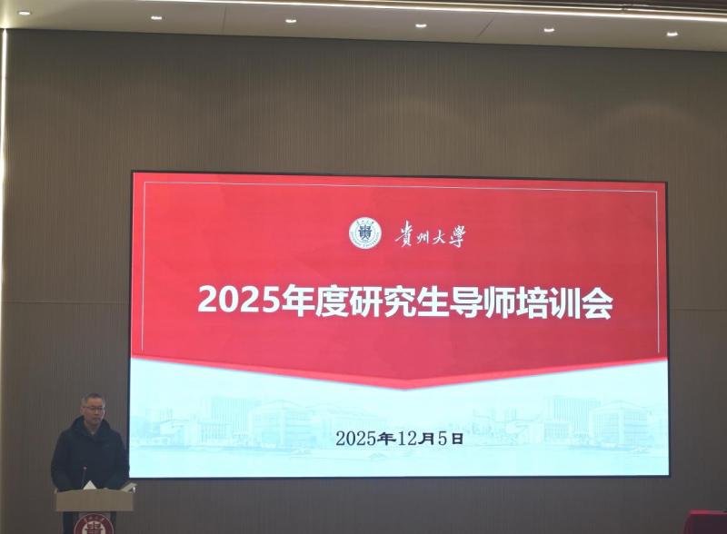 贵大新闻网讯(研究生院 供稿)12月5日,贵州大学2025年度研究生导师培训会在西校区举行。副校长王锦荣出席会议,我校新晋研究生导师,各学院分管研究生教育的领导及研究生科负责人参加会议。