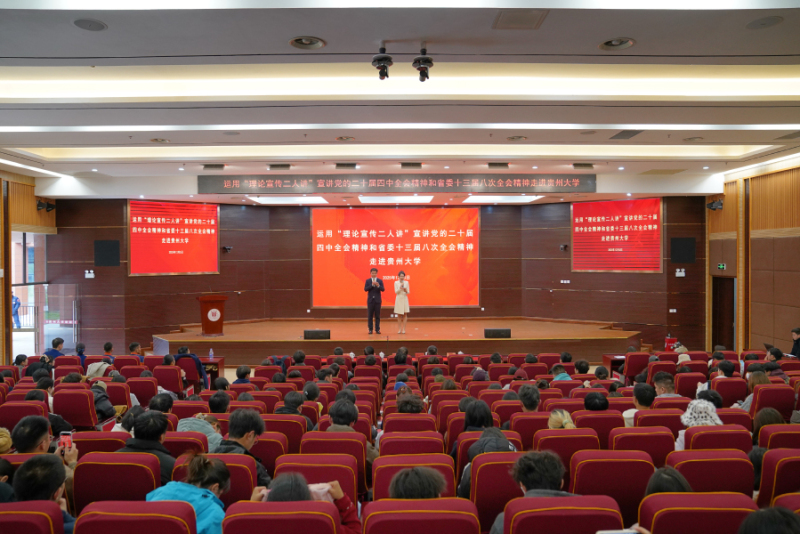 贵大新闻网讯(文字/庞爱忠 学生记者 罗莉 摄影/高秀娟 王鑫颖)12月5日下午,运用“理论宣传二人讲”宣讲党的二十届四中全会和省委十三届八次全会精神走进贵州大学活动在西校区举行。省“理论宣传二人讲”工作专班常务副组长、省社科联党组成员、副主席黄昌祥,贵州大学党委副书记张大林、副校长陈艳波,省“理论宣传二人讲”专班办公室主任、省社科联科普教育部部长李政飞出席活动。省“理论宣传二人讲”专班办公室、省社科联宣讲队伍人员、我校师生代表参加活动。