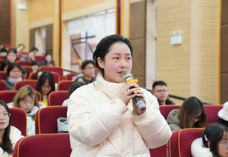在互动环节,同学们结合宣讲内容,围绕文化创新、志愿服务、科研精神等实践案例,表达了对党的二十届四中全会及省委十三届八次全会精神的深刻领悟和积极投身强国建设的决心。