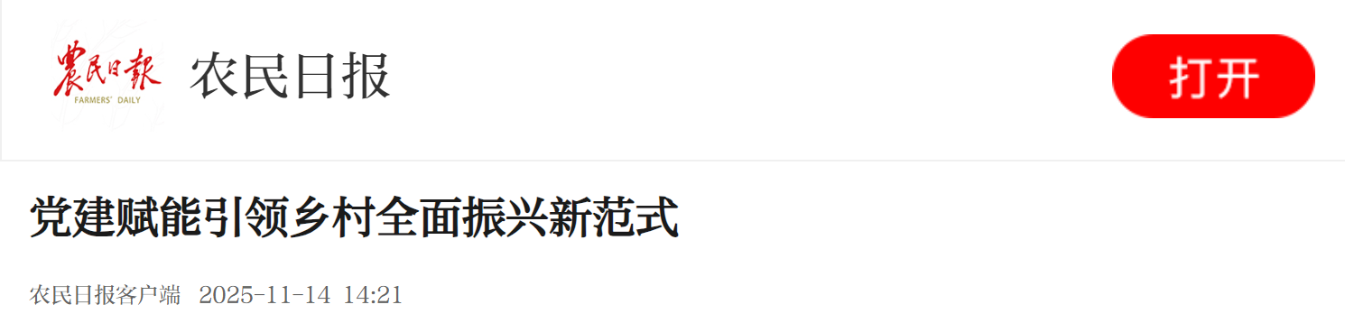 农民日报:党建赋能引领乡村全面振兴新范式